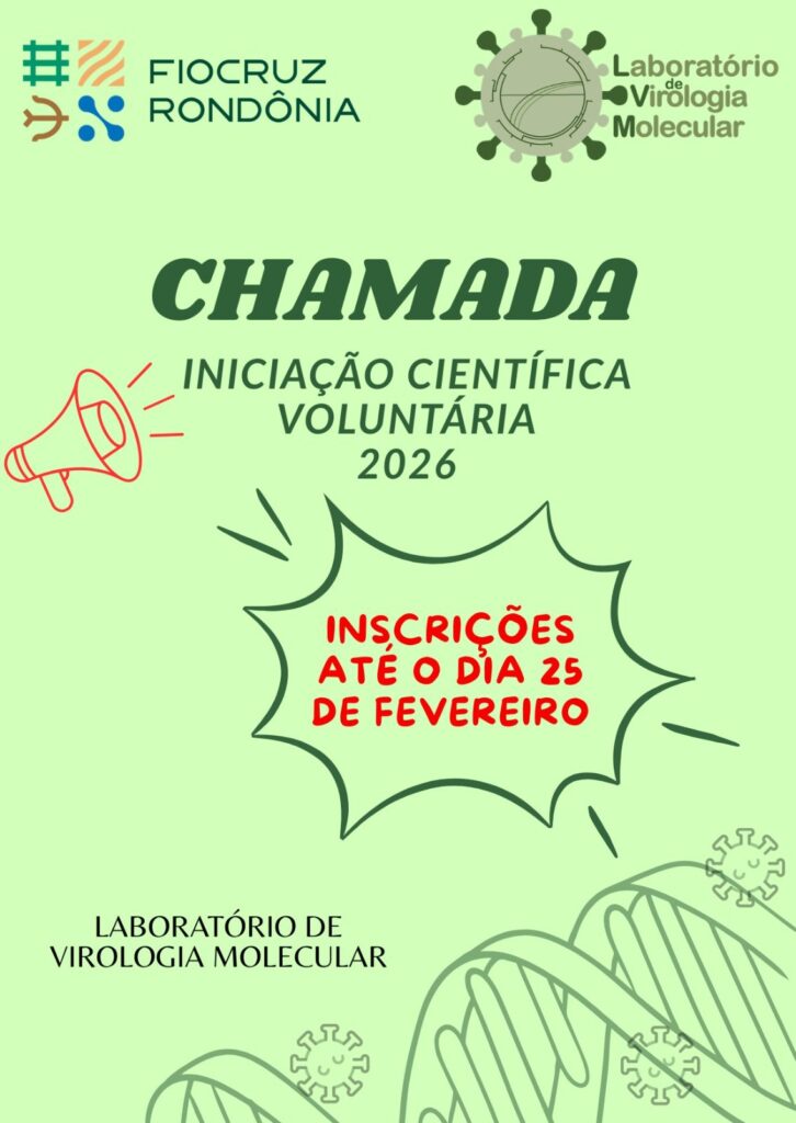 O Laboratório de Virologia Molecular da Fiocruz Rondônia divulga processo seletivo para Iniciação Científica Voluntária. O processo é destinado a estudantes de Medicina.